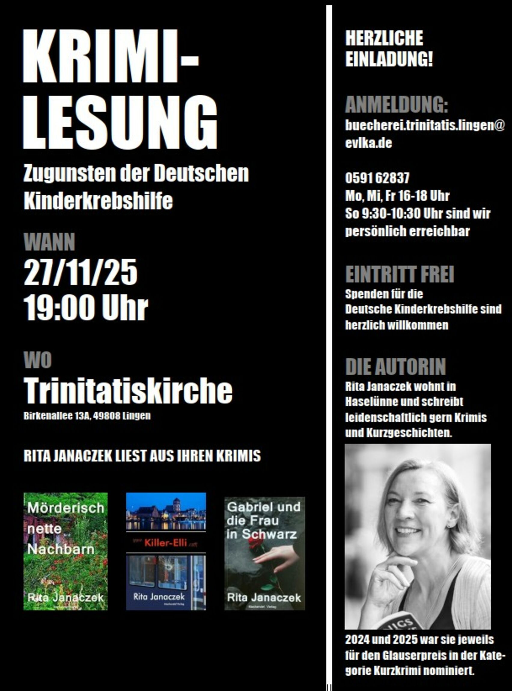 Für unsere Planung bitten wir um Anmeldung unter buecherei.trinitatis.lingen@evlka.de oder 0591 62837